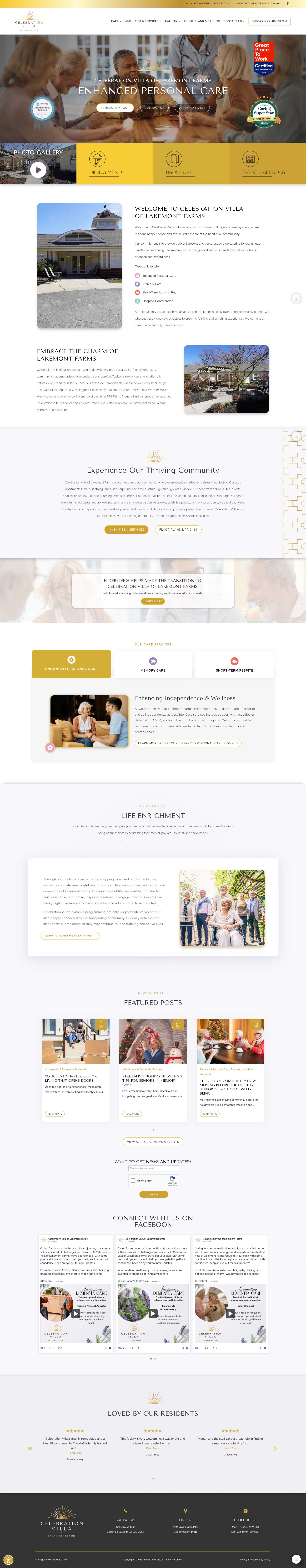 Celebration Villa of Lakemont Farms needed a website that felt warm, credible, and easy to navigate—while clearly communicating the value of their senior living community. The existing experience lacked clarity for families researching care options and didn’t fully support lead capture or next-step actions. Success meant creating a site that built trust quickly, served multiple audiences, and functioned as a true marketing foundation.
